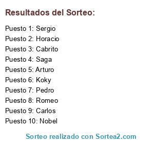 Lista de participantes: Arturo, Cabrito, Carlos, Koky, Nobel, Pedro, Romeo, Saga, Sergio, Horacio.