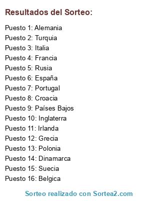 Lista de participantes: Alemania, Belgica, Croacia, Dinamarca, España, Francia, Grecia, Inglaterra, Irlanda, Italia, Países Bajos, Polonia, Portugal, Rusia, Suecia, Turquia.