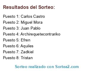 Lista de participantes: Aquiles, Efren, Miguel Mora, Zadkiel, Carlos Castro, Juan Pablo, Archirequetecontrariko, Tristan.