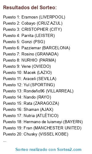 Lista de participantes: Buijin (BETIS), Chusky (VISSEL KOBE), Urko (OSASUNA), Vene (OVIEDO), Rudy (LAS PALMAS), Macek (LAZIO), Pazziemar (BARCELONA), Nando (RAYO), Fran (MANCHESTER UNITED), Rodri (BURGOS FC), Rondeño96 (VILLARREAL), Eramosn (LIVERPOOL), Bitan92 (BILBAO), Gonzi (PSG), NURHIO (PARMA), Shaman (AJAX), Parrita (LEISTER), CRISTOPHER (CITY), Rosino (GRANADA), Rata (ZARAGOZA), Nutria (ATLÉTICO), Anticule (CADIZ), MAISTER (CHELSEA), Tech (STTUDGARD), Araceli (SEVILLA), Yul (SPORTING), Villavane (REAL SOCIEDAD), Hermano de luismeyi (BAYERN), Oliver (MALAGA), Cobayo (CRUZ AZUL), Luismeyi (MADRID), Zombi (DORMUND).