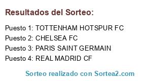 Lista de participantes: PARIS SAINT GERMAIN, CHELSEA FC, REAL MADRID CF, TOTTENHAM HOTSPUR FC.