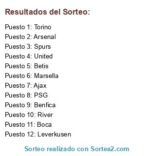 Lista de participantes: Boca, PSG, Benfica, Arsenal, River, Spurs, Leverkusen, Marsella, Torino, Ajax, United, Betis.