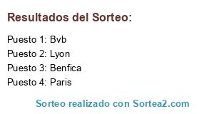Lista de participantes: Lyon, Bvb, Benfica, Paris.