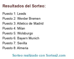 Lista de participantes: Almeria, Leeds, Wolsburgo, Werder Bremen, Sevilla, Milan, Bayern Munich, Atletico de Madrid.