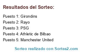 Lista de participantes: Athletic de Bilbao, Rayo, Manchester United, Girondins, PSG.