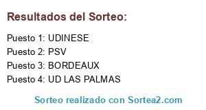 Lista de participantes: UD LAS PALMAS, UDINESE, BORDEAUX, PSV.
