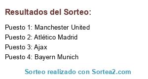 Lista de participantes: Bayern Munich, Manchester United, Atlético Madrid, Ajax.