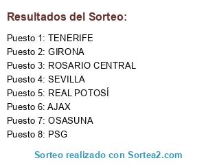 Lista de participantes: BARCELONA, DEPORTIVO, ROMA, SPORTING, R.MADRID, NAPOLES, OSASUNA, MANCHESTER CITY.