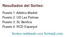 Lista de participantes: UD Las Palmas, RCD Espanyol, SL Benfica, Atletico Madrid.