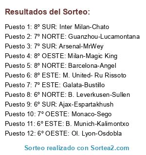 Lista de participantes: 6º OESTE: Ol. Lyon-Osdobla, 6º NORTE: B. Leverkusen-Sullen, 6º ESTE: B. Munich-Kalimontxo, 6º SUR: Ajax-Espartakhush, 7º SUR: Arsenal-MrWey, 7º OESTE: Monaco-Sego, 7º NORTE: Guanzhou-Lucamontana, 7º ESTE: Galata-Bustillo, 8º ESTE: M. United- Ru Rissoto, 8º SUR: Inter Milan-Chato, 8º OESTE: Milan-Magic King, 8º NORTE: Barcelona-Angel.