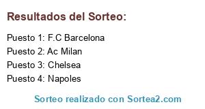 Lista de participantes: F.C Barcelona, Napoles, Ac Milan, Chelsea.