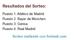 Lista de participantes: DEPOR, SASSUOLO, REAL MADRID, INTER.
