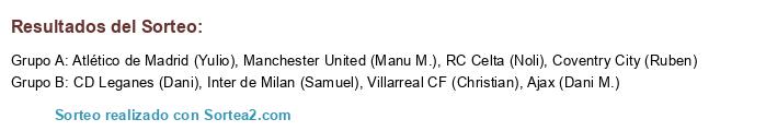 Lista de participantes: Manchester United (Manu M.), Villarreal CF (Christian), RC Celta (Noli), Atlético de Madrid (Yulio), Coventry City (Ruben), Ajax (Dani M.), Inter de Milan (Samuel), CD Leganes (Dani).