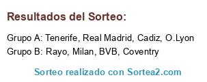 Lista de participantes: Cadiz, Rayo, Tenerife, BVB, O.Lyon, Milan, Coventry, Real Madrid.
