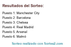 Lista de participantes: Real Madrid, Barcelona, Chelsea, Manchester City, Malmö, Arsenal.