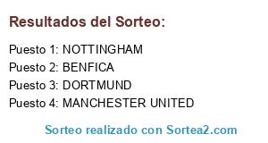 Lista de participantes: NOTTINGHAM, BENFICA, MANCHESTER UNITED, DORTMUND.