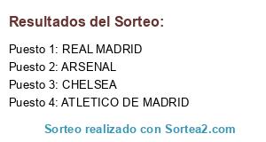 Lista de participantes: REAL MADRID, ATLETICO DE MADRID, CHELSEA, ARSENAL.