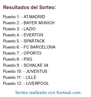 Lista de participantes: - LILLE, - LAZIO, - JUVENTUS, - EVERTON, - PSG, - SCHALKE 04, - LIVERPOOL, - OPORTO, - SPARTACK, - AT.MADRID, - BAYER MUNICH, - FC BARCELONA.