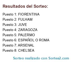 Lista de participantes: CHELSEA, ARSENAL, ZARAGOZA, ESPAÑOL O ROMA, PALERMO, JUVE, FULHAM, FIORENTINA.