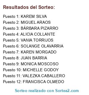 Lista de participantes: SOLANGE OLAVARRIA , MONICA MOSCOSO , JUAN BARRIA , MICHELLE GODOY , KAREM SILVA , KAREN MORGADO , FRANCISCA OLMEDO , BÁRBARA PIZARRO , VALEZKA CABALLERO , MIGUEL ARAOS , ALICIA COLLANTE , VANIA TORRIJOS.