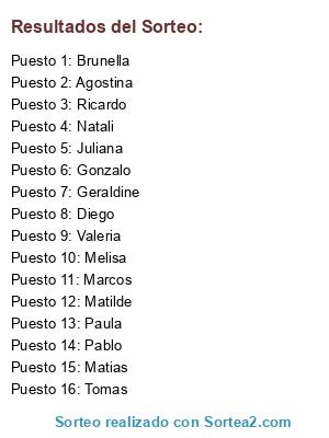 Resultados del sorteo: