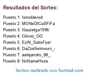 Lista de participantes: ublaya777, DaZzeSelmouni_-, EzW_SatisFyer, Vilafantjett, AleeexRoca, SrGorgonita, xKoman7, trompePS, aalejandro_88_, Uniq_Juan, xsamba-_-6Jx, MARKITO_23_, Giinoo_GG, Danimadrid199912, Ismoldeivid, Serfio777, UnaiVk7, NoNameHxze, Campi_ct96, MONeDICaSFiFa, Nauzetga1996, ismaelo0511, Franmrrm, AboutDxN, eladiobeyo, Yerobe0103, MrLeoGol99, Big_Sinduu, Germanmolongo, Rubeenprieetoo, Cheminator1990, elbrokoo30, Cristianfnt9, SergioGM_, javiivii_1611, Franzapilloo10.