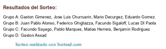 Lista de participantes: Lucas DI Paola, Facundo Sigaloff, Facundo Sayago, Gaston Gimenez, Gaston Assad, Mario Decurgez, Matias Herrera, Federico Ghigliazza, Jose Luis Churruarin, Juan Pablo Alonso, Benjamin Rodriguez, Eduardo Gomez, Pablo Marques.