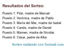 Lista de participantes: Mamen, madre de Nicolás, María del Mar, madre de Isabel, Urbina, padre de David Urbina, César, padre de Alba, Rafa, padre de Roberto, Verónica, madre de Pablo, Pilar, madre de Manuel, Cande, madre de Daniel.