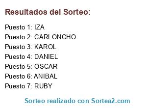 Lista de participantes: KAROL, ANIBAL, OSCAR, IZA, CARLONCHO, DANIEL, RUBY.