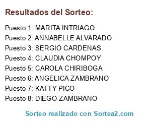 Lista de participantes: MARITA INTRIAGO, CAROLA CHIRIBOGA, KATTY PICO, CLAUDIA CHOMPOY, ANGELICA ZAMBRANO, ANNABELLE ALVARADO, SERGIO CARDENAS, DIEGO ZAMBRANO.