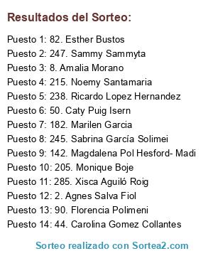 Lista de participantes: 1. 1Mari Carmen Cano, 2. Agnes Salva Fiol, 3. Agostina Colautti, 4. Aina Caldentey, 5. Aira Reyes, 6. Albertina Tessi, 7. Alicia Busquets Lozano, 8. Amalia Morano, 9. Amandine Banaszak, 10. Ami Deni, 11. Amparo Espadas Nuñez, 12. Ana Arias Carrasco, 13. Ana Belen Velazquez Escobar, 14. Ana Celia, 15. Ana Diaz, 16. Ana Elias, 17. Ana M RL, 18. Ana Pardo Sanchez, 19. Anabel Crespillo, 20. Andrea Giunta, 21. Andreina Gaspar, 22. Andreu Cortes Forteza, 23. Angela Lerna, 24. Angeles Begara, 25. Antonia Antich Barcelo, 26. Antònia Perelló Muntaner, 27. Arantxa De Ayarra, 28. Ascension Castellano Delgado, 29. Aurora Crippa, 30. Aurora Mateu Cruzado, 31. Bàrbara Beltran Bisbal, 32. Bea Merino, 33. Bea Muñoz Carrion, 34. Beatriz E. Espinosa, 35. Beatriz Romera Gomez, 36. Begus Orabengoa Valls, 37. Brumarchu Quiwi, 38. Cami Pregal, 39. Carlos Mir, 40. Carme Bertrán Alcay, 41. Carmen García, 42. Carmen Molto Pomar, 43. Carolina Fernández Monjín, 44. Carolina Gomez Collantes, 45. Carolina Pérez De Muñoz, 46. Catalina Llambias Valiente, 47. Catalina Roca Suau, 48. Cati Castells, 49. Cati Ramis, 50. Caty Puig Isern, 51. Cecilia Losa, 52. Cielo Escribano Garrido, 53. Conchi Nuñez Lozano, 54. Cristina Alcaraz Daviu, 55. Cristina Ambrona, 56. Cristina Ruedas Garcia, 57. Cristina Triay Oliver, 58. Cristina Xumet Frau, 59. Daniel Arroyo García, 60. David Consuegra, 61. Delia Rodriguez Martorell, 62. Devid Di Lello, 63. Dori Gomila Alfaro, 64. Elena Balsa, 65. Elena Bastias Sarmiento, 66. Elena Encinas, 67. Elena Roman Diaz, 68. Elena Thomas, 69. Eliana Díaz Ramírez, 70. Eliane Merchan Crespo, 71. Elisa Esquina Van Berlo, 72. Elizabeth García Sánchez, 73. Elizabeth Ruiz Martinez, 74. Elzbieta L Lignowska, 75. Emperatriz Morla, 76. Encarna Roman Lopez, 77. Enric Rondoni, 78. Erica Hernandez, 79. Escoletes Mallorca Pimem, 80. Esmeralda Calderon, 81. Estela De Cima, 82. Esther Bustos, 83. Estrella Rodriguez Font, 84. Eva Maria Viveros Sanchez, 85. Eva Rabadan, 86. Fami Serra, 87. Fatima Fdez R, 88. Fil Henry, 89. Fina Limorti, 90. Florencia Polimeni, 91. Francisco Javier Jimenez Oliva, 92. Gema Rodríguez García, 93. Graciela Alonso Candanedo, 94. Guada Ripoll, 95. Inma Comino, 96. Inma Fiol, 97. Irene Mercade Balaguer, 98. Irene Sánchez Lupiáñez, 99. Irenenc Navarro, 100. Iria Noceda Balseiro, 101. Isa Antich, 102. Isa Bennasar, 103. Isabel Bueno, 104. Isabel Dueñas Gonzalez, 105. Isabel Molina, 106. Isabel Rodriguez Leiva, 107. Ivanina Hristova, 108. Jaime J. Company, 109. Javi R.b, 110. Javier Duran Diaz, 111. Jennifer Meri, 112. Jessica Gonzalez Saiz, 113. Joaquin Trigo, 114. Jose Luis Gomez Gallego, 115. JoseVane Dueñas Ferrer, 116. Josue Enfedaque Aguilar, 117. Joy Alcivar, 118. Juanamari Borras Coronado, 119. Julieth Martinez, 120. Kar Mele, 121. KaRi GM, 122. Katrina Sanchez, 123. Laia Capo, 124. Lara Sanchez, 125. Laura Galvez, 126. Laura Martos, 127. Laura Mas, 128. Laura Sintes Marin, 129. Lauri Correa, 130. Lida VH, 131. Lidia Agüero Rodriguez, 132. Lina Ramis Huertas, 133. Loli Femenias, 134. Loly Manjon Estevez, 135. Lorena Caballero de Segovia, 136. Lorena De La Fuente, 137. Luisa Suarez Ramos, 138. Lupe Somoza Villacastin, 139. M Ángeles Luna, 140. Madeleine Arias Grimaldos, 141. Magda Frau Miralles, 142. Magdalena Pol Hesford- Madi, 143. Maika Caballero, 144. Maite Calderon, 145. Maite Climent Aparisi, 146. Mar Andrés Ramon, 147. Mar Bastidas, 148. Mar Cifre, 149. Mar Ribas, 150. Mar Ribas, 151. Mar Sampol, 152. Marga Bordoy Tortella, 153. Marga Hita Garcia, 154. Marga Palmer, 155. Marga Simonet Lladó, 156. Margalida Vilanova Torres, 157. Margarita Bauza Felipe, 158. Margarita Belousova, 159. Mari Angeles Sahuquillo Gonzalez, 160. Mari Carmen Ignacio, 161. Mari Carmen Martin Campaña, 162. María Ángeles Palma, 163. Maria Antonia Carsi Cerda, 164. Maria Del Mar Perez Arias, 165. Maria Del Mar Puigserver, 166. Maria Dolores Mochon Tallon, 167. María Font, 168. Maria Garcias, 169. María Guardiola, 170. Maria Jose Garcia, 171. Maria José Velasco Mombiedro, 172. Maria Mayans, 173. María MB, 174. María Mestre Capó, 175. Maria Payeras Barcelo, 176. Maria Perello, 177. Maria Pons Salvà, 178. Maria Rodriguez Rodriguez, 179. María Rosado, 180. Marian Deya Dethorey, 181. Mariangeles Bermúdez Moya, 182. Marilen Garcia, 183. Marilén Ramis Bonnín, 184. Marilena Roca, 185. Marilena Sitjar, 186. MariLuz Soares, 187. Marina Gelabert, 188. Marina Reinoso Crespo, 189. Mariona Pons Boissel, 190. Maripaz Pérez, 191. Marisol Morentin, 192. Marta Bestard Palou, 193. Marta Perez, 194. Martina Llull Seguí, 195. Mary Romero, 196. Maryna Sokil, 197. Mayka Peterson, 198. Melisa Novel Parra, 199. Mery Bustos, 200. Minichef Yyo, 201. Miriam Lagunas, 202. MJose Gual, 203. Monica Oliver, 204. Monica Samaniego Garcia, 205. Monique Boje, 206. Montse Alvarez, 207. Mtwinky Garcia Delgado, 208. Nadia Medina, 209. Nadine Hernández Rotger, 210. Naiara Agirre López, 211. Nena Nadal, 212. Neus Perelló, 213. Noelia Calvo, 214. Noemi Pascual Gil, 215. Noemy Santamaria, 216. Nuria-Antonio Ll-j, 217. Nutricion Emma Kiko, 218. Olga Lopez Jimenez, 219. Olga Torres, 220. Olivia Egea Juan, 221. Pa Qui, 222. Paolo Häckl, 223. Paquita Coll, 224. Patricia Gonzalo, 225. Patricia Reyes, 226. Patricia Troyano, 227. Pep Vives, 228. Petons De Xocolata Pastissos, 229. Pilar Amate, 230. Pilar Garcia Garcia, 231. Pilar Jimenez, 232. Pons Ypc, 233. Rafael Bolivar Valdivia, 234. Raquel Ad, 235. Raquel Arques Toro, 236. Raquel Martos, 237. Raquel Mesa, 238. Ricardo Lopez Hernandez, 239. Rocio Sousa Puentes, 240. Rosa Maria Garcia Perello, 241. Rosalia Barros, 242. Rosario Segovia Martinez, 243. Rossana Hermida, 244. RoSy CeRa, 245. Sabrina García Solimei, 246. Sally Go, 247. Sammy Sammyta, 248. Sandra Rodriguez, 249. Sandra Tascon, 250. Sara Fernandez Vela, 251. Sara Pons Botia, 252. Silvia Boned, 253. Silvia Dorado Planells, 254. Silvia Fabregat, 255. Silvia Furnes, 256. Silvia Iglesi
