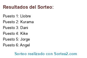 Lista de participantes: Jorge, Kike, Kurama, Angel, Llobre, Dani.