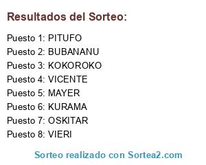 Lista de participantes: BUBANANU, KURAMA, MAYER, VIERI, VICENTE, OSKITAR, PITUFO, KOKOROKO.
