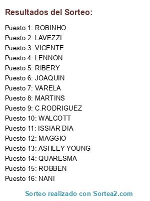 Lista de participantes: ROBBEN, RIBERY, LENNON, MAGGIO, ROBINHO, NANI, WALCOTT, VICENTE, QUARESMA, MARTINS, VARELA, C.RODRIGUEZ, JOAQUIN, LAVEZZI, ASHLEY YOUNG, ISSIAR DIA.