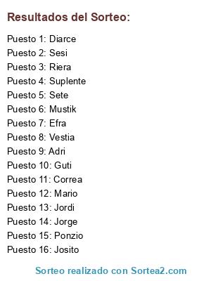 Resultados del sorteo: