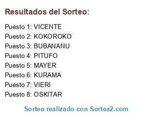 Lista de participantes: BUBANANU, KURAMA, MAYER, VIERI, VICENTE, OSKITAR, PITUFO, KOKOROKO.