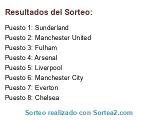 Lista de participantes: Arsenal, Liverpool, Manchester City, Chelsea, Everton, Sunderland, Manchester United, Fulham.