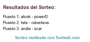 Lista de participantes: andie - scar, tete - rubenteve, alook - powerD.