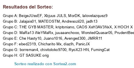 Lista de participantes: Juano1016, MATEOSTM, lalovelazquez9, PrudentBee131, ebed2319, GT SASUKE orig, WorstedQuasar05, CAOS XxH3AV3NxX, PanicJX, MorDK, RyoX23 HN, Avenged300, THE GYB MASTER, Jalajais01, Chicharito Mx, juuaaanchooo, Xbjuus JULS, chivitoloko9700, diazlh, borreman4, kriptoniano, Andresozil20, JMRR11, FumingCat, jadh13, Che Hasty10, X HOCH X, BeigeJUssEF, MaRa13 iNeYMaRx.