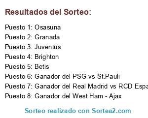 Lista de participantes: Juventus, Brighton, Betis, Ganador del West Ham - Ajax, Granada, Ganador del Real Madrid vs RCD Espanyol, Osasuna, Ganador del PSG vs St.Pauli.