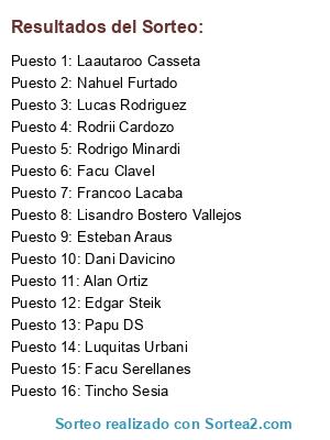 Lista de participantes: Francoo Lacaba, Facu Serellanes, Alan Ortiz, Luquitas Urbani, Rodrii Cardozo, Rodrigo Minardi, Lisandro Bostero Vallejos, Papu DS, Laautaroo Casseta, Esteban Araus, Nahuel Furtado, Tincho Sesia, Dani Davicino, Facu Clavel, Edgar Steik, Lucas Rodriguez.