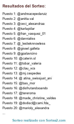Lista de participantes: @ atina_swissjust_ani, @disfrutandooando, @disfrutandooando, @julianasanchez15, @__leslieknnowless, @vale.cdecarrasco, @valemedinar, @valemedinar, @_frandenisse, @_frandenisse, @tereroma, @oscarsosa1900, @__leslieknnowless, @__leslieknnowless, @valemedinar, @_frandenisse, @tereroma, @oscarsosa1900, @andreacepedaruiz, @enfermeria__cl, @____constan_za___, @dfernaandaa, @andresosa70, @rociodiaz.a, @made_christine_valdes, @fran_vasquez_01, @gissel.galleta, @fran_vasquez_01, @gissel.galleta, @caterin.sl, @andreacepedaruiz, @caterin.sl, @andreacepedaruiz, @andreacepedaruiz, @caterin.sl, @fran_vasquez_01, @gissel.galleta, @karlapiilar, @gissel.galleta, @tobar_valeria, @marioly_alexandra, @nayadeth_lissette, @stephi_ese_ac, @caterin.sl, @andreacepedaruiz, @bas_mor, @javitaandreaa, @majo1905frare, @cesar_antonio_16, @mj.cespedes, @ceci_alexandraa, @nayadeth_lissette, @tobar_valeria, @dannialiss, @cami.fda_, @dannialiss, @dulcedilema, @shades.of_cool, @dannialiss, @cami.fda_, @dodiscl@cami.fda_, @dodiscl, @dannialiss, @cami.fda_, @fabitatens, @pulgiiita, @clau_xcs, @dominique.caceree, @feerleeivaa, @yus_cofre, @dodiscl, @dannialiss, @camygnaciaa, @milygutierrezchavez, @sofifpp, @stefyabr, @paloma.riverosf, @meryrocker, @alefrancisca, @brenet_c, @made_christine_valdes, @alefrancisca, @andreacepedaruiz, @caterin.sl, @dannialiss, @sergio_9.5 @vari_mh, @atina_swissjust_ani, @disfrutandooando, @disfrutandooando, @ julianasanchez15, @ __leslieknnowless, @vale.cdecarrasco, @valemedinar, @carii._.andre, @nicoolelagos8 h, @valemedinar, @_frandenisse, @_frandenisse, @tereroma, @oscarsosa1900, @__leslieknnowless, @caterin.sl, @andreacepedaruiz, @__leslieknnowless, @caterin.sl, @andreacepedaruiz, @diakaco, @javieralillosoltof, @karlapiilar, @_leslieknnowless, @disfrutandooando, @ceci_alexandraa, @gpalavicino, @enni_diani_, @anitta.val, @stephi_ese_ac, @rociodiaz.a, @catalinanunezrisso, @disfrutandooando, @anitta.val, @anitta.val, @anitta.val, @anitta.val, @anitta.val, @anitta.val, @anitta.val, @anitta.val, @anitta.val, @anitta.val, @anitta.val, @anitta.val, @anitta.val, @anitta.val, @anitta.val, @anitta.val, @anitta.val, @anitta.val, @_leslieknnowless, @_leslieknnowless, @_leslieknnowless, @_leslieknnowless, @disfrutandooando, @disfrutandooando, @_leslieknnowless, @_leslieknnowless, @_leslieknnowless, @_leslieknnowless, @_leslieknnowless, @_leslieknnowless.