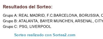 Lista de participantes: F.C.BARCELONA, REAL MADRID, PSG, BAYER MUNCHEN, BORUSSIA, ATALANTA, CHELSEA, CITY, ARSENAL, LIVERPOOL.