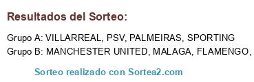 Lista de participantes: VILLARREAL, SPORTING, MALAGA, PSV, PALMEIRAS, MANCHESTER UNITED, FLAMENGO, BARCELONA.