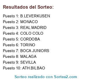 Lista de participantes: BOCA JUNIORS, MALAGA, COLO COLO, CORDOBA, ATH.BILBAO, REAL MADRID, MONACO, TORINO, SEVILLA, B.LEVERKUSEN.