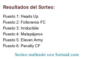 Lista de participantes: Matapájaros, Heads Up, Penalty CF, Eleven Army, Irriducibile, Folloneros FC.