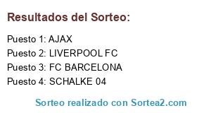 Lista de participantes: SCHALKE 04, LIVERPOOL FC, AJAX, FC BARCELONA.