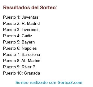 Resultados del sorteo: