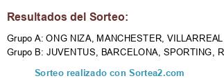 Lista de participantes: ONG NIZA, VILLARREAL, JUVENTUS, CADIZ, SPORTING, ROMA, MANCHESTER, BARCELONA.