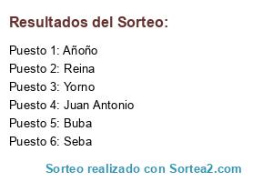 Lista de participantes: Yorno, Añoño, Juan Antonio, Seba, Buba, Reina.